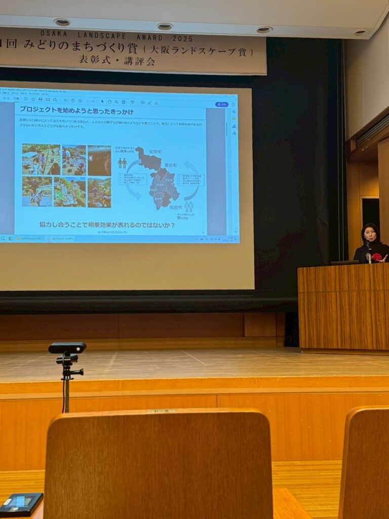 短い時間ですが、登壇してプロジェクトについて紹介する時間もいただき、皆さまに江坂ひとときの里山ガーデンについてお話させていただきました。