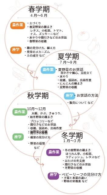 *カリキュラムは天候や野菜の生育状況等によって事前告知なく急遽変更する場合があります。あらかじめご了承ください。