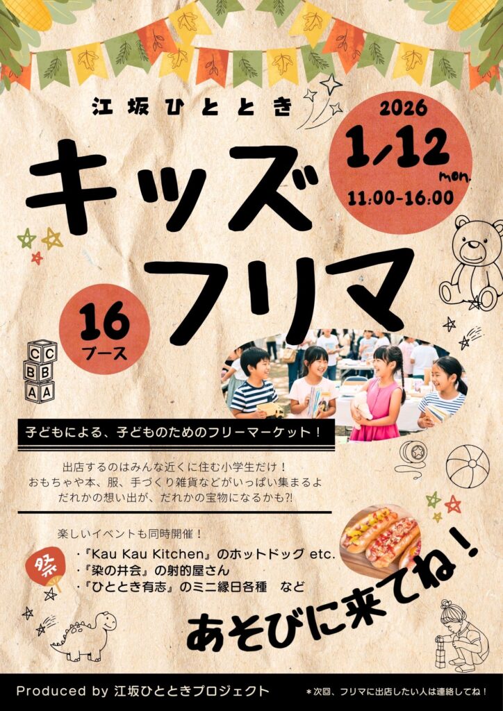 12月クリスマス頃に予定していたキッズフリマが雨天中止となり、急遽、1月12日に振り替えて開催しました。