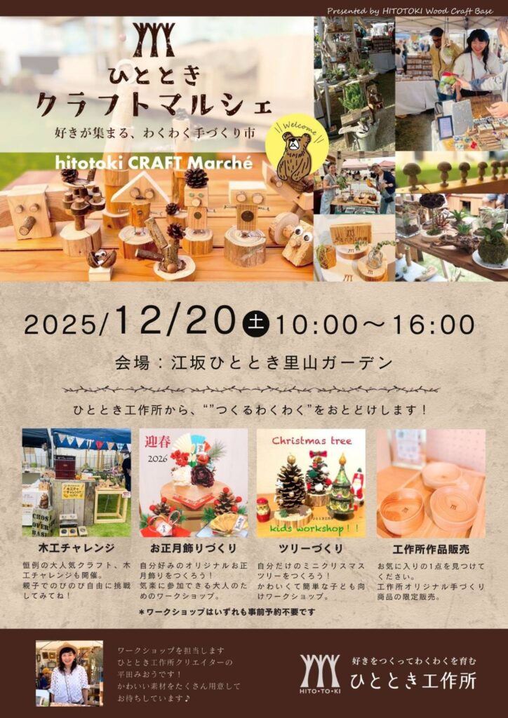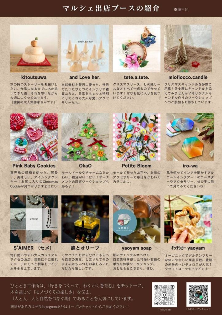可愛いミニクリスマスツリーやお正月飾りのワークショップも開催します!(予約不要です)
